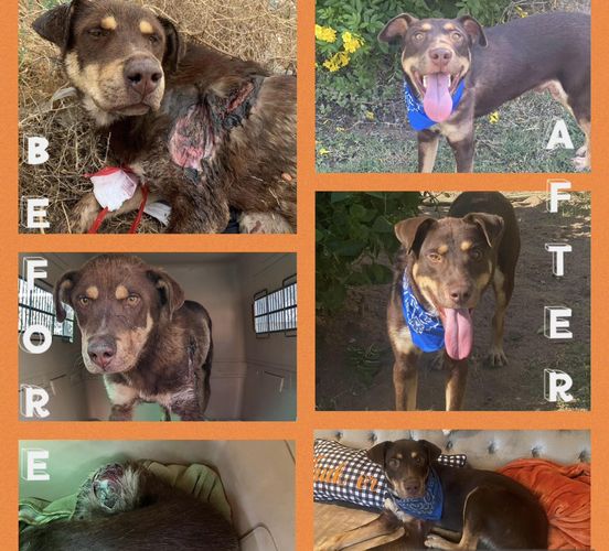 What a transformation for this sweet guy!! Some of you might not recall, but this was Chester. Chantal & Vernan with RezRoads went out to rescue him back in July after we received these horrific photos of him in a help request. He was laying amongst trash on the side of the road and could not move after being struck by a vehicle.